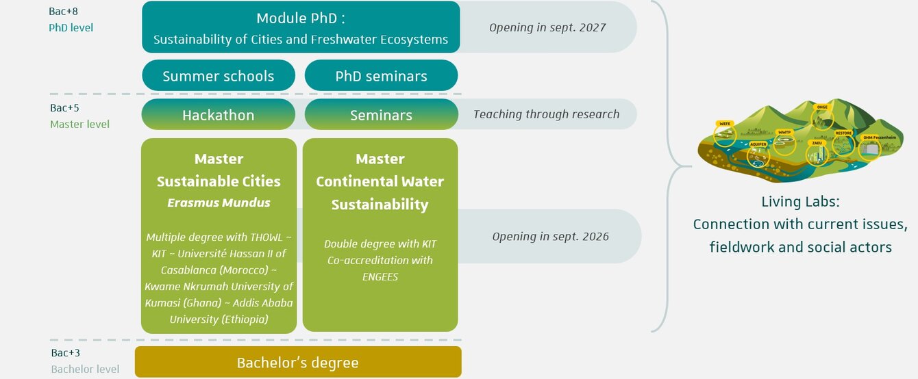 Le Graduate Programme (programme de formation supérieure) de l’ITI Switch pour les étudiant.es en Master et les doctorant.es est conçu pour répondre aux défis mondiaux, régionaux et locaux liés à la durabilité de l'eau et des villes. Il propose une approche innovante et intégrée de la formation, axée sur l’interdisciplinarité et la mise en œuvre de projets sur des cas réels.