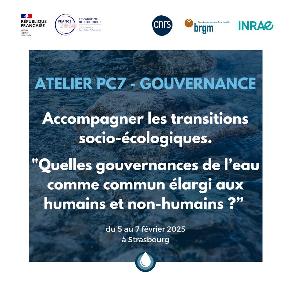 Cet atelier s’inscrit dans le Projet Ciblé 7 (PC7[1])du PEPR OneWater – Eau Bien Commun. Il fait suite au premier atelier organisé à Rennes en mars 2024 et vise à approfondir les réflexions sur la place du non-humain dans la gouvernance de l’eau.